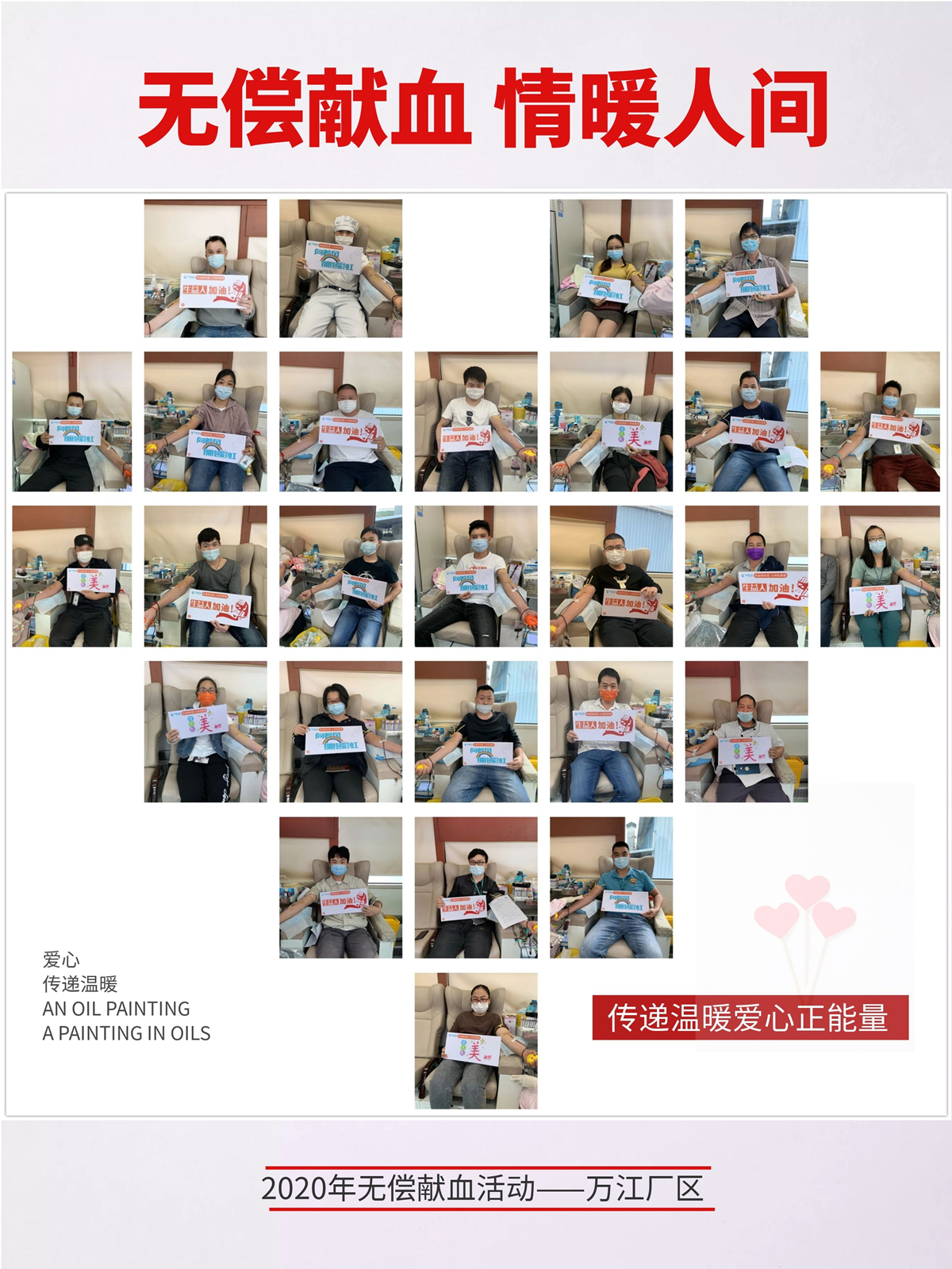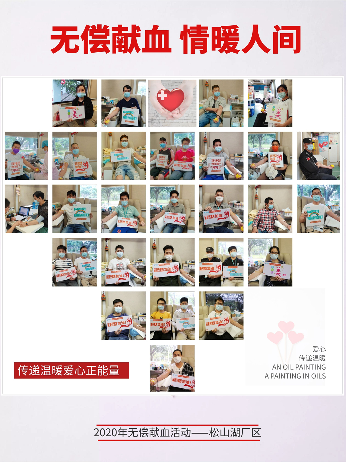 为继续倡导广大员工关心社会、关心他人、履行公民义务,持续发扬B体育·BSPORTS人的大爱精神, 2020年4月23日,广东B体育·BSPORTS工会和人力资源部组织了2020年度无偿献血活动,该活动在万江厂区和松山湖厂区两地同时进行。来自公司各个部门的同事积极参与活动、奉献爱心,此次献血活动共有97人参加,献血30800毫升。