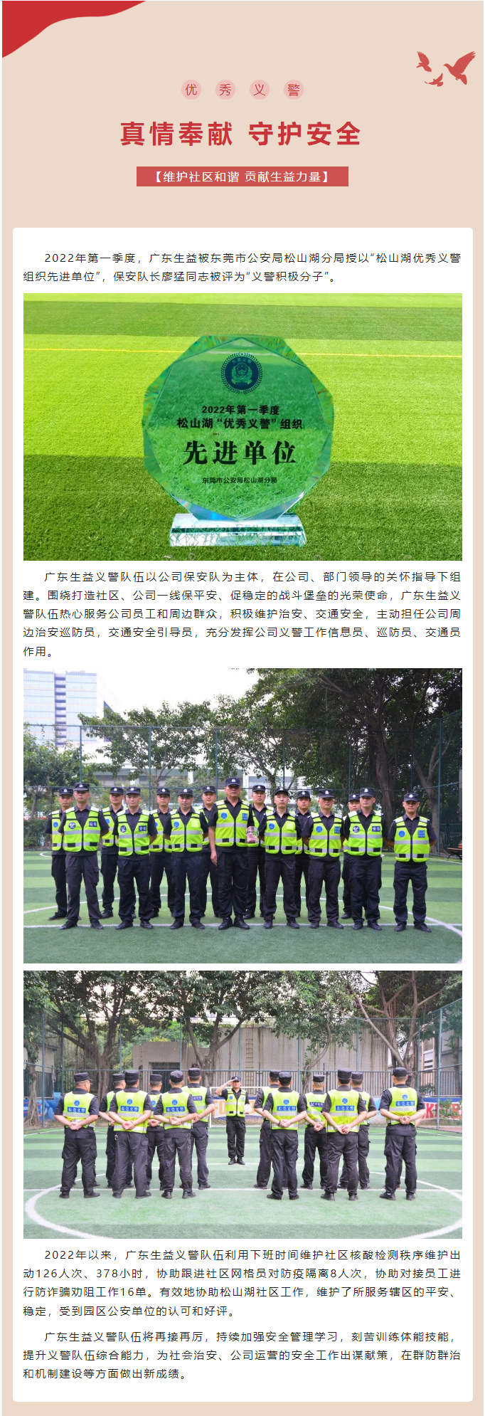 真情奉献 守护安全——广东B体育·BSPORTS荣获“松山湖优秀义警组织先进单位”
