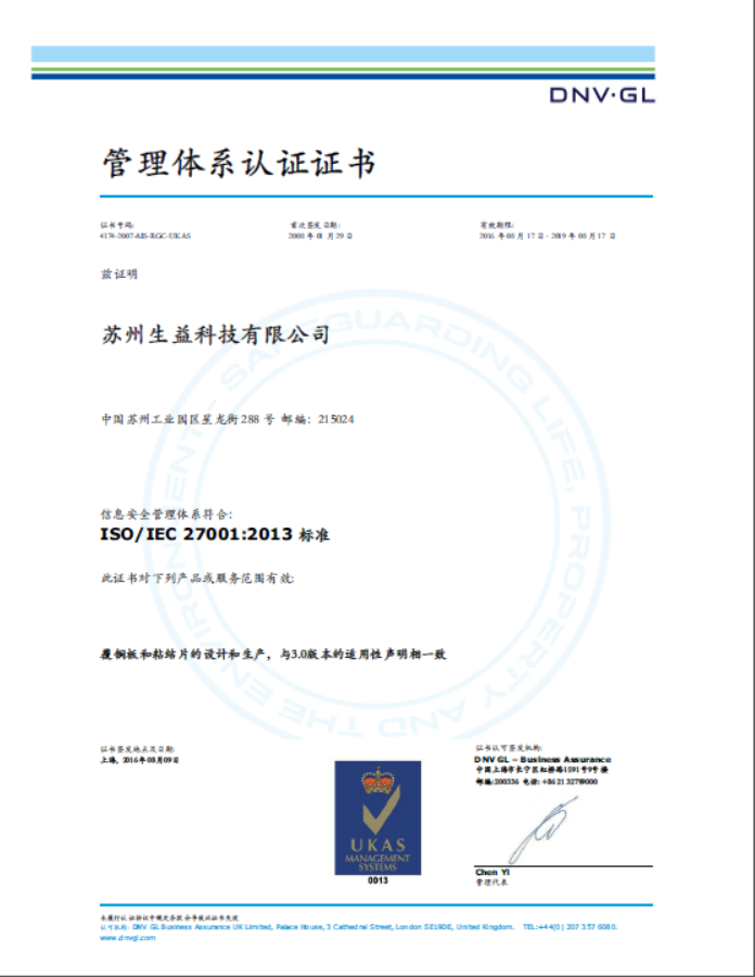 ISO27001证书(苏州B体育·BSPORTS)
