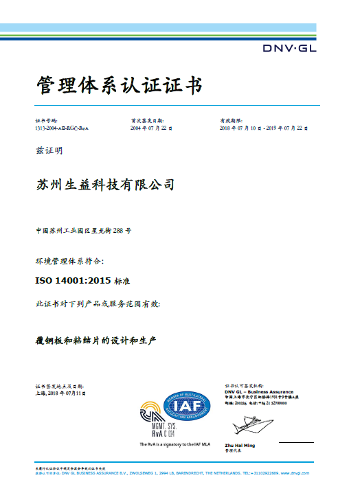 ISO14001证书(苏州B体育·BSPORTS)