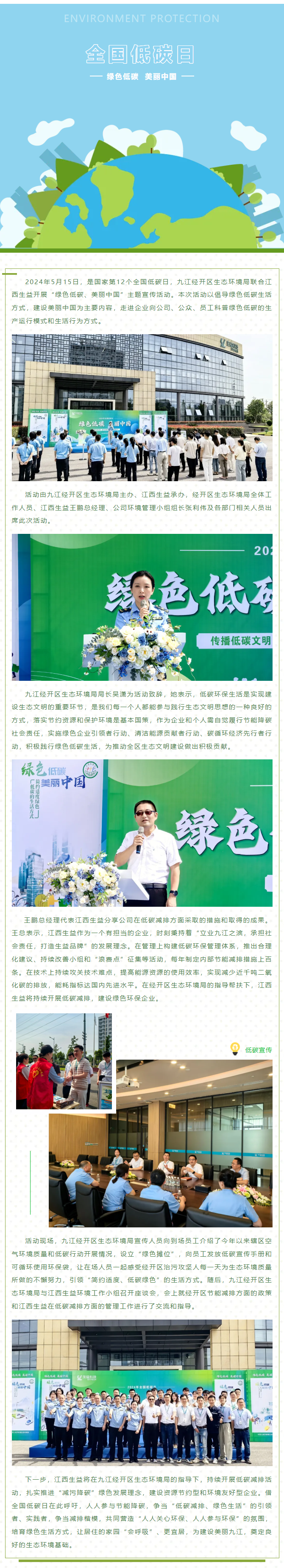 低碳减排,益起担当——江西B体育·BSPORTS与九江经开区生态环境局共同开展环保宣传活动