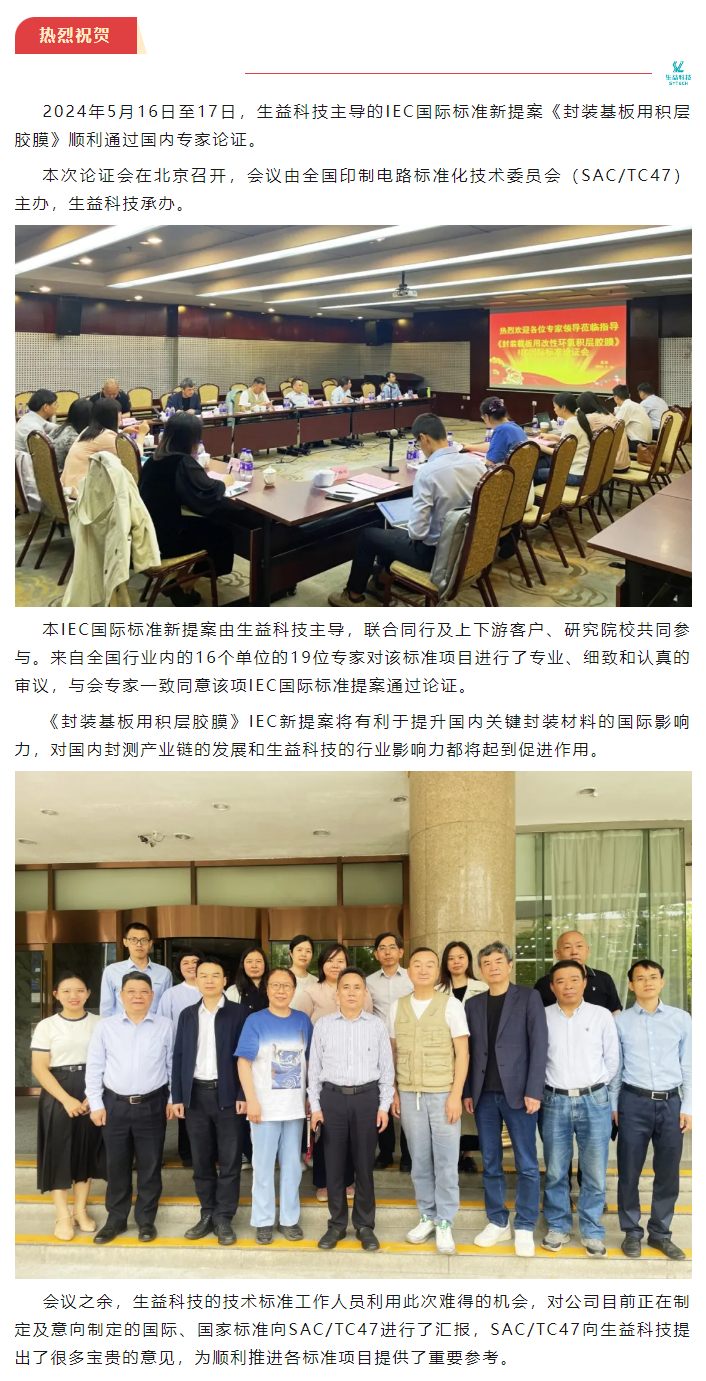 B体育·BSPORTS科技主导的封装基板用积层胶膜IEC新提案通过国内论证