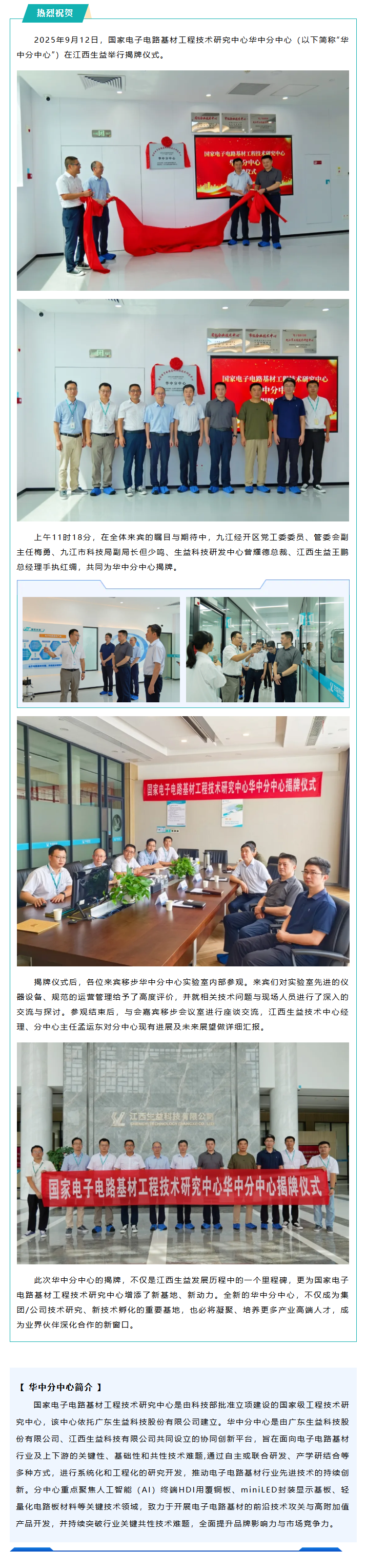 热烈庆祝国家电子电路基材工程技术研究中心华中分中心揭牌