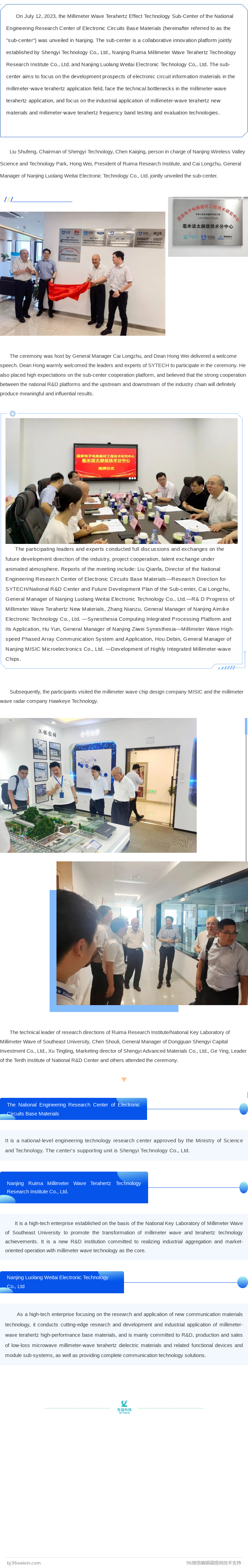 WARMLY CELEBRATE THE INAUGURATION OF THE MILLIMETER-WAVE TERAHERTZ TECHNOLOGY SUB-CENTER OF THE NATIONAL ENGINEERING RESEARCH CENTER OF ELECTRONIC CIRCUITS BASE MATERIALS IN NANJING