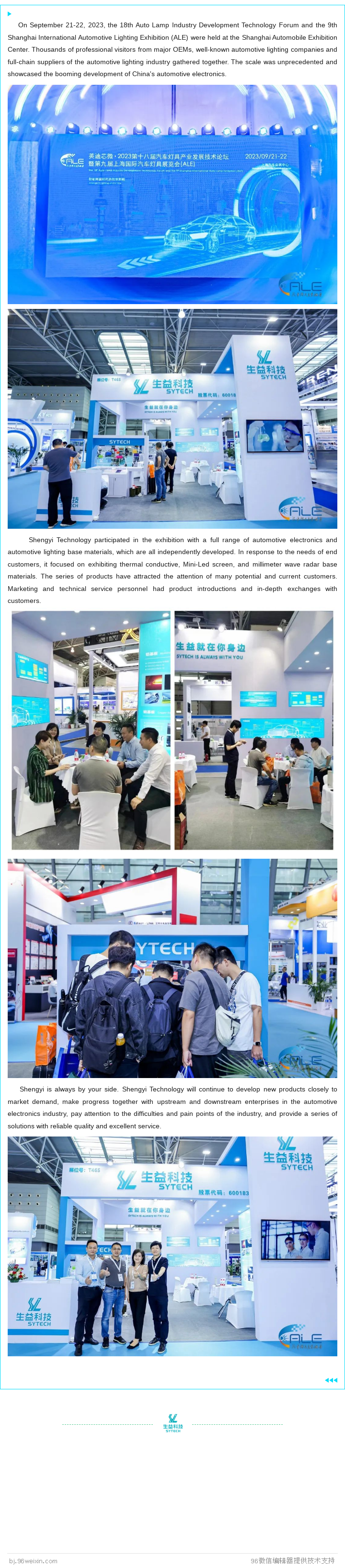 SHENGYI TECHNOLOGY PARTICIPATED IN THE 18TH AUTO LAMP INDUSTRY DEVELOPMENT TECHNOLOGY FORUM AND THE 9TH SHANGHAI INTERNATIONAL AUTO LAMP EXHIBITION (ALE)