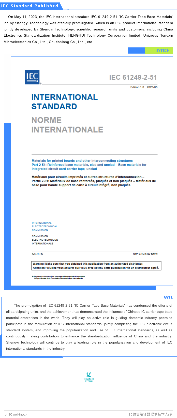 WARM CONGRATULATIONS: AN IEC INTERNATIONAL STANDARD LED BY SHENGYI TECHNOLOGY WAS OFFICIALLY PROMULGATED