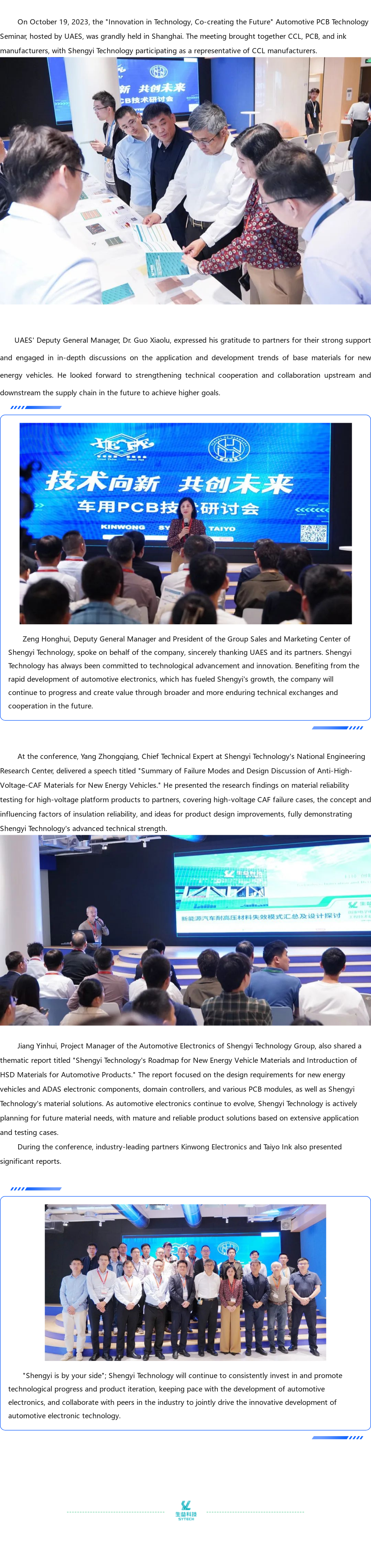 Shengyi Technology Participates in UAES' "Innovation in Technology, Co-creating the Future" Automotive PCB Technology Seminar