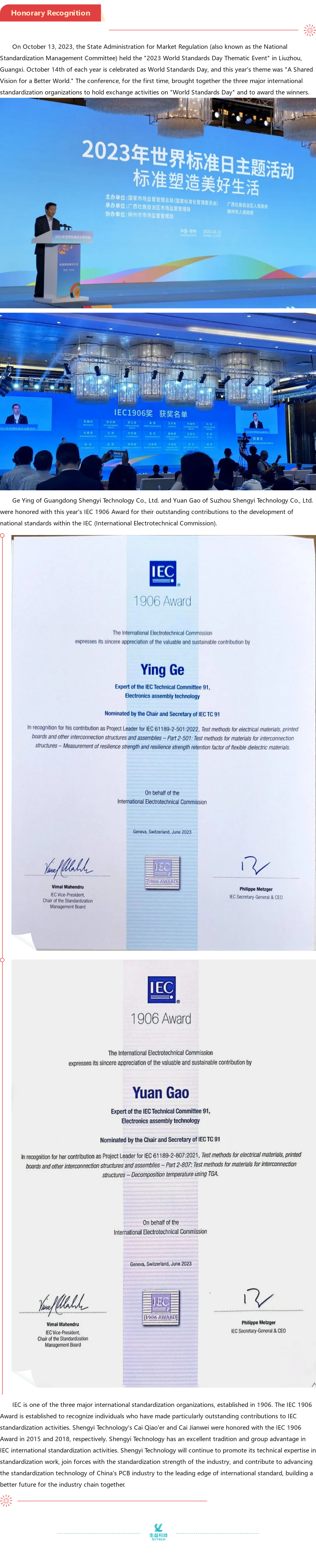 Shengyi Technology's Ge Ying and Yuan Gao Honored with the IEC 1906 International Standard Individual Awards